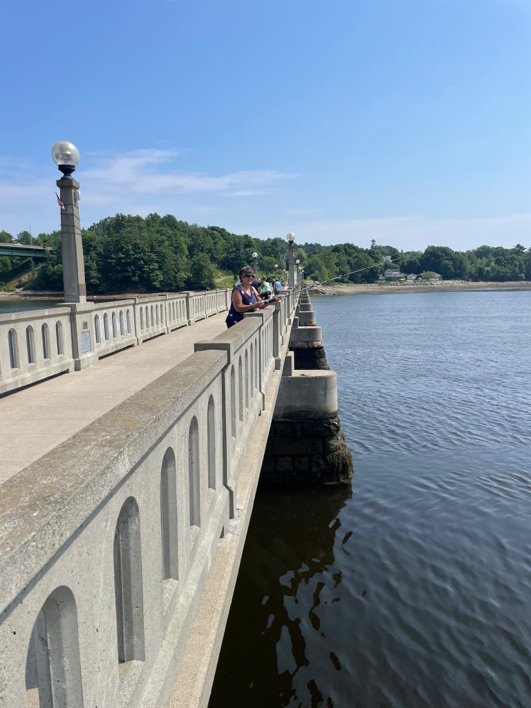 One morning, my husband and I went fishing on the bridge and that was fun. As usual, he and I didn’t catch anything. We are not sharp fishers. But we did meet people who would stop by to chat. Very friendly people in this area. There is a walking trail not too far from the end of this bridge on the shipyard end. It is an easy walk from the shipyard to Main Street via a Harbor Walk path.