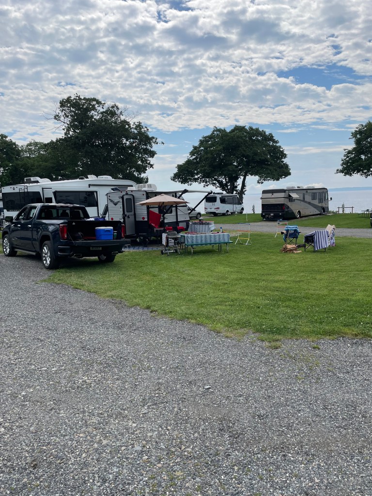 Because our first camper was small, we put a lot items outdoors. You can see we liked having extras. This spot was perfect for us. Take note, there is a Moorings II, but this is Moorings. They are different. As far as amenities, this place does not have a big list. The only amenity you need is the ocean views. Its proximity to the quaint town of Belfast is another plus. For us, it was a hit.