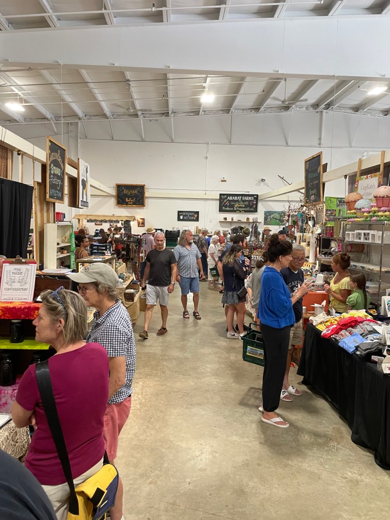 After settling into our campsite, we spent a few days visiting my sister, Lisa and her husband, Jeff. We were sure to go to the Belfast indoor Farmers Market for fresh supplies for our camper meals. She and Jeff gave us the grand tour. It was a really happening market with lots of goodies. I picked up fresh herbs and other things like local maple syrup and cheeses. There were many talented crafters and artists as well. They also have a farmer market outdoors in the summer months I believe.