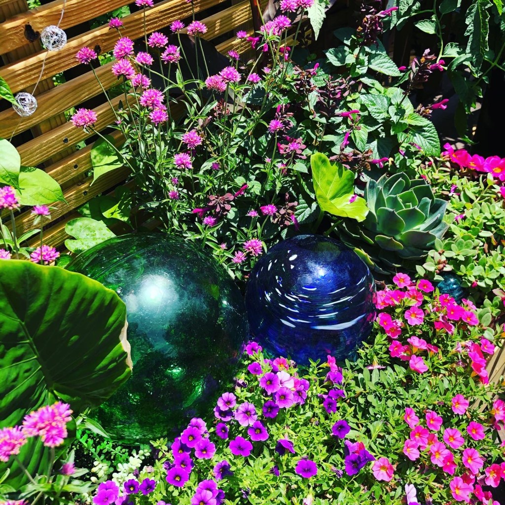 And here is my sis, Lisa with her husband Jeff. She has very pretty flowers in her gardens. You can see beebalm (Monarda) perennial red blooms on tall stems behind her. I remember once Lisa saying she just sticks plants in the ground and lets them do what they do. She seems very successful with this gardening method! I took horticulture courses, so that comment made me laugh that day, but I loved that she said it. Monarda blooms from June to July and the bees love them. Her plants looked very healthy and happy.