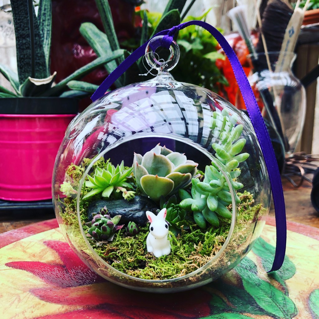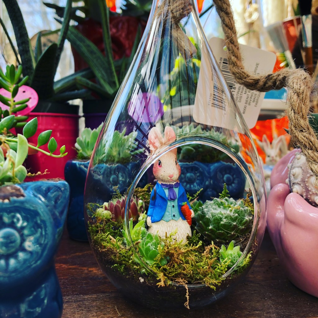 One year, I created many hanging baskets with various houseplants for sale. The reason was the houseplants were gorgeous. Additionally, the hanging baskets had a drain hole with a removable plug. It is so important to have drainage for your plants so these hanging baskets would work well. The plants were also extremely healthy and I thought, “Why not?” I sold quite a few of them. Each had a different mix of houseplants. Houseplants have their own unique sets of challenges. To help reduce them, start with healthy plants, which these were. Look the leaves over and make sure there are no discolorations or signs of insect damage. Houseplants like warm temperatures during the day and cool at night. They would be fine hung outdoors in the summer in these hangers in the right spot. Most houseplants enjoy bright indirect light and do not take direct sun too well. Having them in hanging baskets allowed placement in the home or outdoors in summer. In the summer outdoors, use caution so it is not in full sun where it would burn the leaves. It is imperative to allow water to drain out of the pot, and in this case, a hanging basket. These had a removable plug. This allowed proper drainage. Otherwise, I would not have used hangers for these plants. Hopefully the plants continued to thrive for the customers who purchased them.