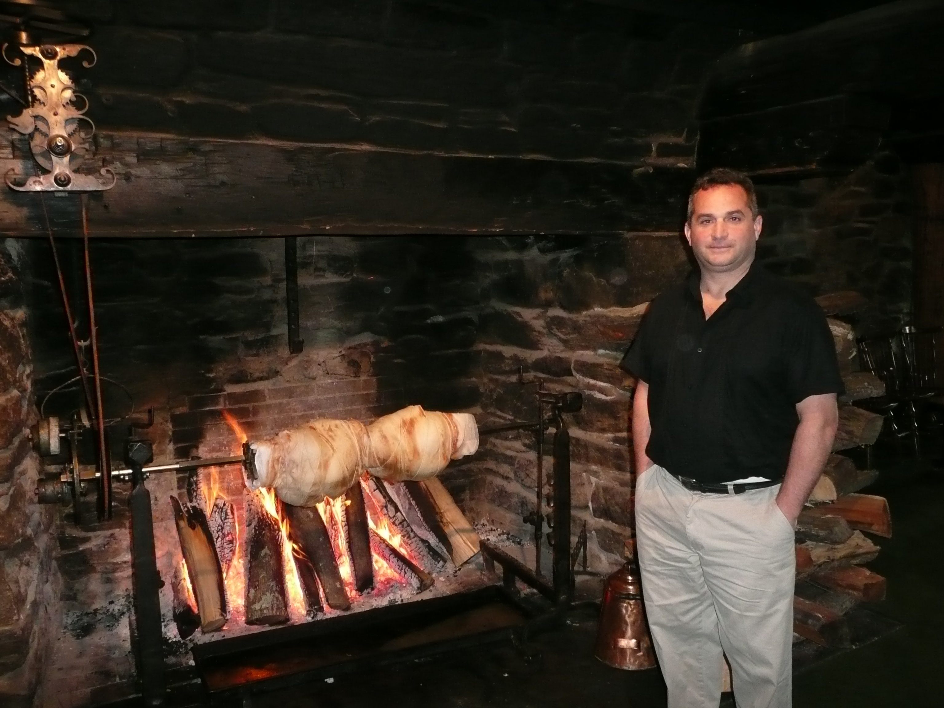 We really enjoyed the restaurant and tavern because it has an old fashioned New England Hospitality feel to it. As you enter the lower level tavern room, the first thing you notice is the warmth of a huge open fire pit with turkeys wrapped in cheese cloth rotating above the flames on a device powered by a magnet! It is a 17th century roasting jack which caught the attention of my husband. It was impressive.