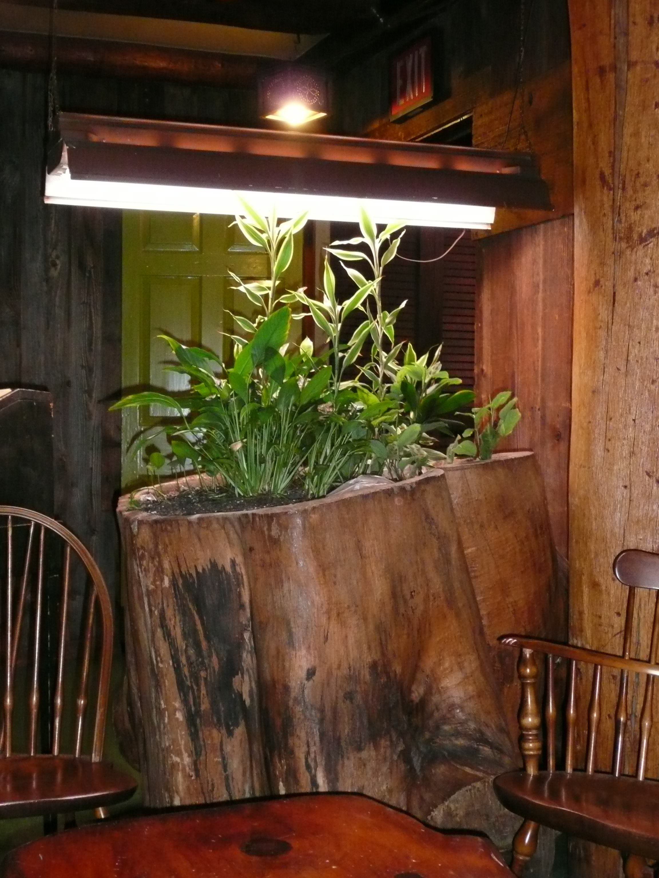 I just had to share this photo of a huge carved out tree trunk filled with houseplants which I saw at the Salem Cross Inn in West Brookfield, MA.