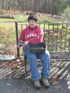 It may take a few jiggles and wiggles, but eventually the rootball loosens enough. You will notice when it starts happening. The rootballs of my plants were damp so it went easily. It also works easily if the soil has completely dried out, but we got rain this week, so these were wet, but not yet frozen thankfully! Then turn the pot over. With a little more encouragement, dump it onto the ground, in a wheelbarrel (if liftable), or onto a large tarp, blanket, or old cloth if you don’t want a soil mess after. #4) Put the rootball onto a handtruck and move it to the location where you want to keep any remaining soil, like a new planned garden bed area, compost pile, or into the woods. Don’t reuse potting soil next year. It won’t retain its properties well. Remember from our Container Gardening Parties in May, we went over why reusing old potting soil from containers does not lead to success. Reuse it different ways. It is not a loss if you can reuse in your gardens or in your compost pile which I have done many times!