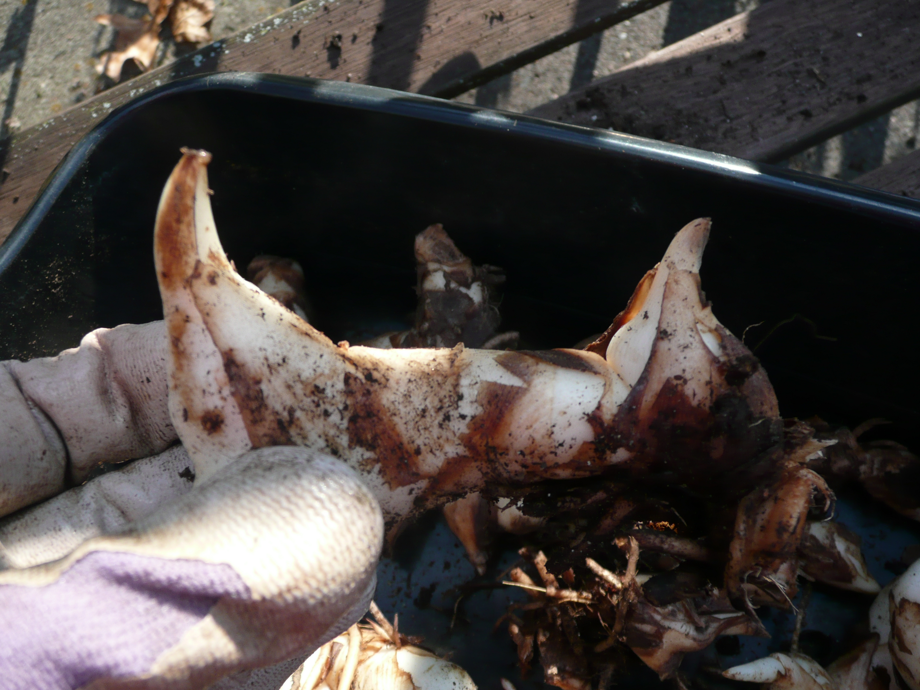 As for the rhizomes, you will see in this photo there are two bulbs like structures attached to the underground storage stem.