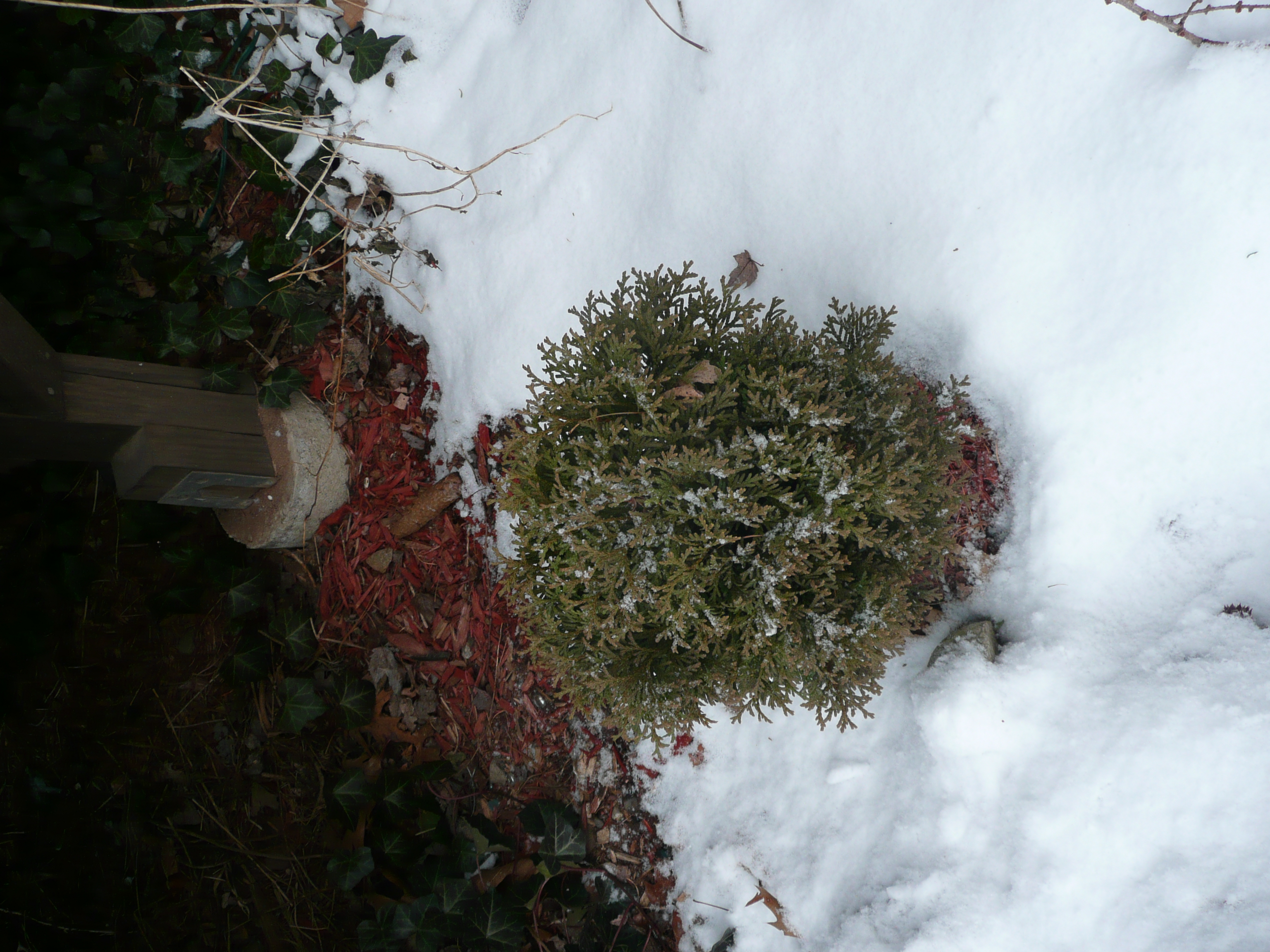 The typical American arborvitae (Thuja occidentalis) is more familiar to everyone. It serves as a great evergreen hedge or privacy wall, or as an anchoring plant. Basically, they are easy care. Many retain their green color throughout the winter months, but I suspect many were damaged this year by our heavy snow fall in Connecticut – some beyond repair. They may require replacing, unless you took the time to shake away the heavy weight of the snow.