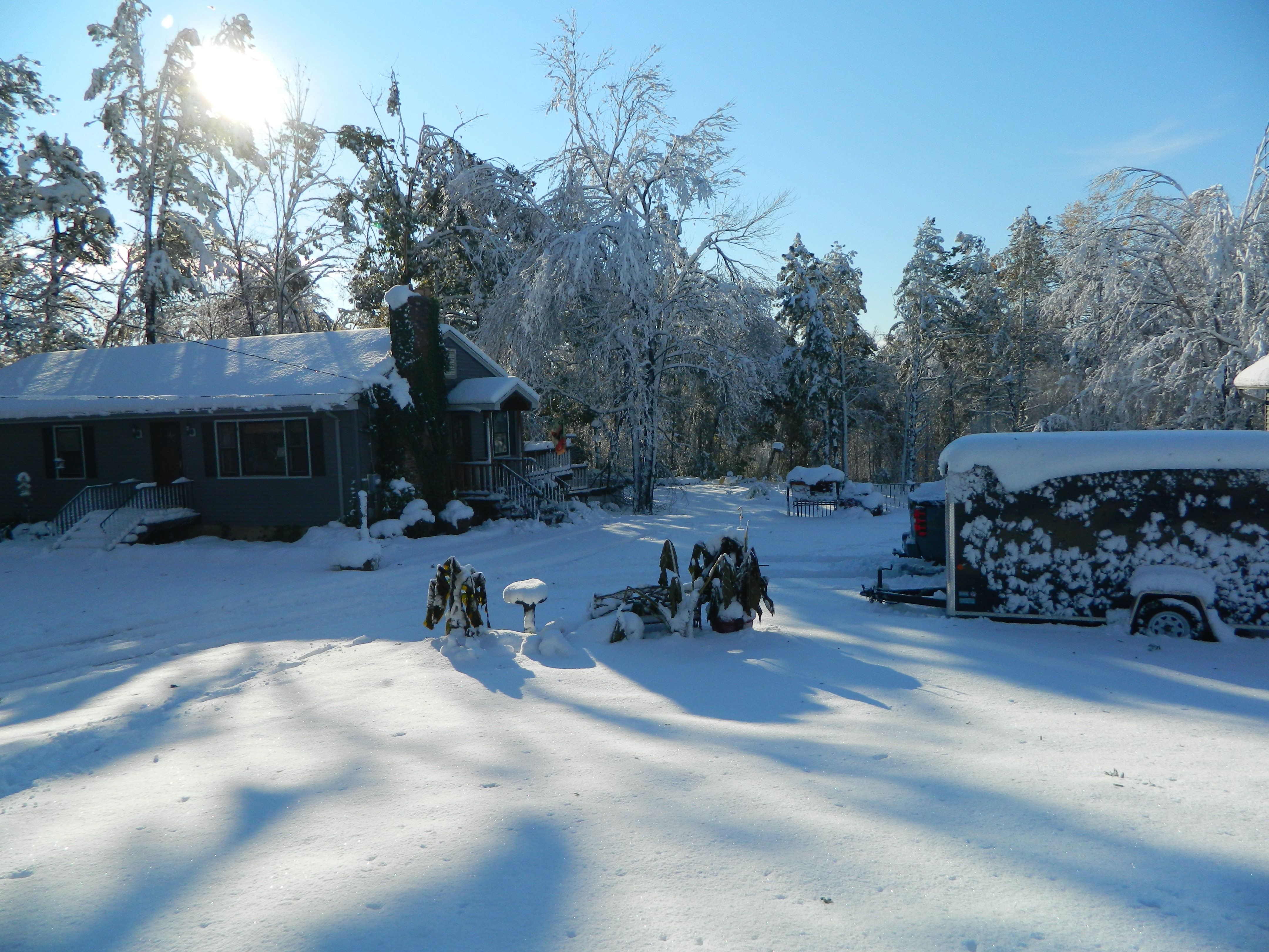 Fire and police sirens continued in the distance, and we would hear them “every day” from the start of Snowlloween to well after power returns. And my husband’s first attempt to drive to work yesterday failed, as I expected. As he exited our driveway to the west, it was impossible to pass due to downed power lines, trees dangling from wires, and fallen limbs. And the main route closest to our home, Route 140, was a complete mess, all unpassable. It was the first time we literally could not get to the highway.
