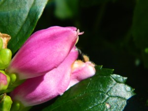 One afternoon, when I was admiring the bees up-close and taking photos, a hummingbird swooped near my head and swooshed by the plant’s top. He was checking me and the flowers out on this now very large ‘Hot Lips’ turtlehead perennial plant. So large now, it was the size of a small shrub. So I decided to sit quietly on the ground and wait patiently to see if the hummingbird would return. He did. But of course, getting a photo was impossible due to their warp speed. While this plant teased the hummingbird viewer, I personally never saw the hummingbird sipping from it, but it is certainly a candidate to add to the hummingbird or bee lover’s garden bed, with one catch. It needs moist soils to perform well, and the right amount of space due to its larger size. In gardens, it is best used mid section, but in container gardens you can place them wherever you want in a large container. For me, containers worked well because of observation opportunities.