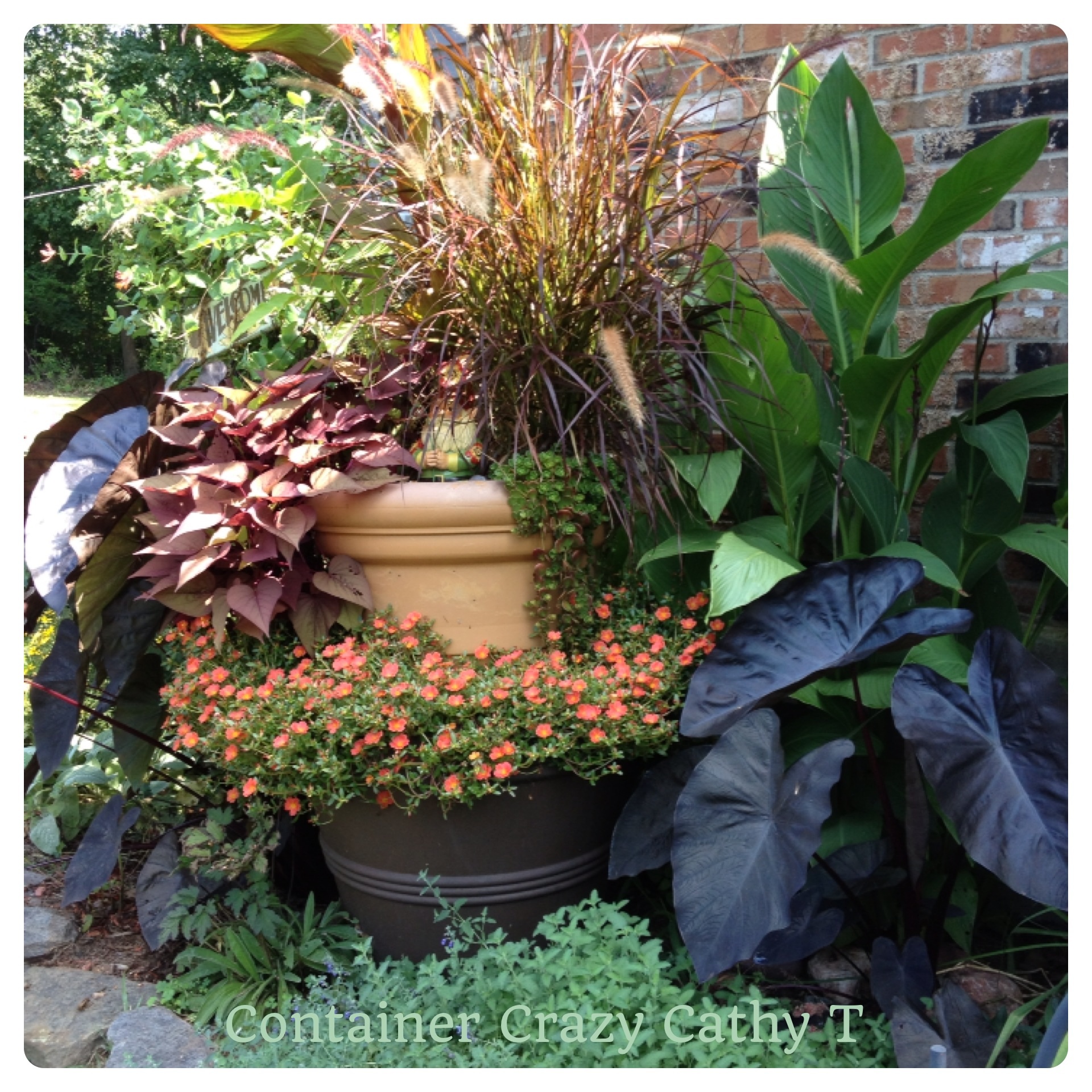 The fact my containers are old and a bit worn did not matter because the plants created a lush and full look hiding the scratches on the pots. As one Facebook friend posted, it is “Beautiful, rich, luscious, heavenly.” I, of course, agree!