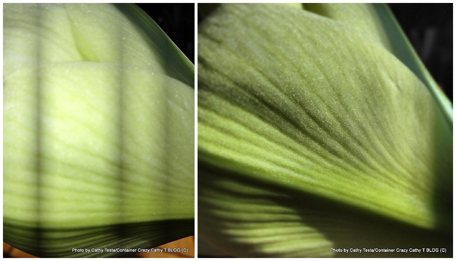 To me, the internal parts of a flower are just as beautiful as the flower buds and petals. With Amaryllis blooms, you can see them clearly should you want to examine them or use them as a teaching opportunity for kids.  And if you want to learn how to pollinate your own Amaryllis by hand which is done to create hybrids (crossing with another variety) or to ensure pollination for seeds, see directions here by Amaryllisbulbs.org. There are some close up photos of how you can apply the pollen from the anthers to the stigma at the “right” romantic time.  See also the video at the bottom of this post for more on how to pollinate Amaryllis.