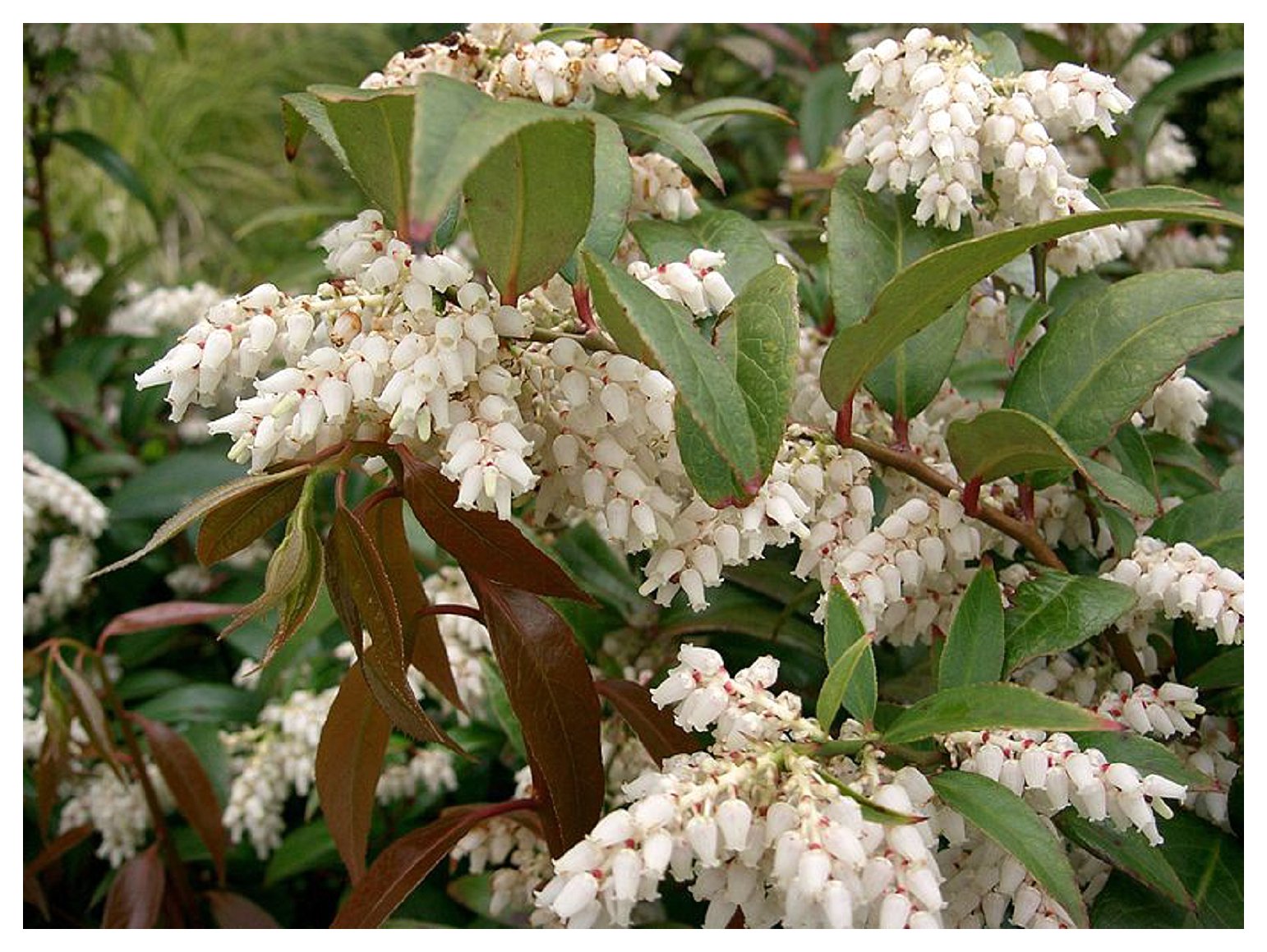 I think this plant’s growing habit is best described as floppy or arching, but its technically spreading and low growing. The white urn-shaped flowers bloom in clusters along the stems near the base of the leaves in April and May. They are very pretty, resembling heather or perhaps the blooms of Pieris, and are mildly fragrant. This evergreen shrub is made for shady locations, preferring partial to full shade, so it is a great solution for shady spots in your yards.