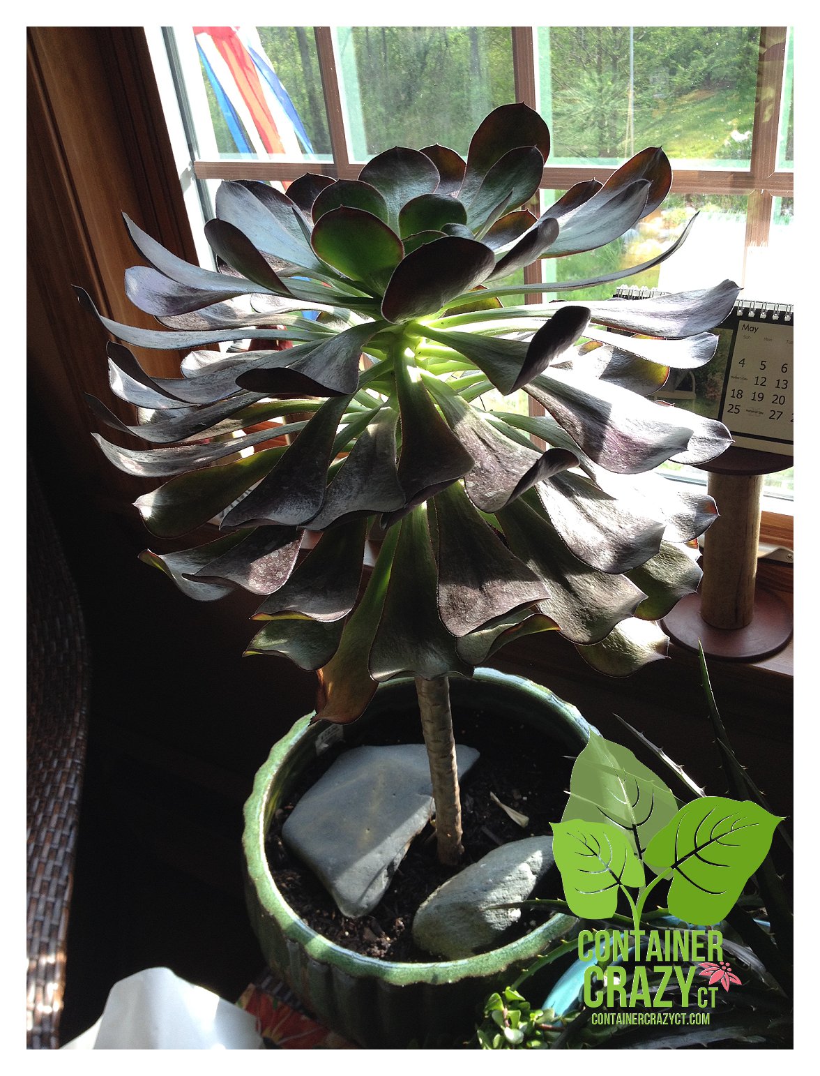 By the way, Aeonium is pronounced like ay-OO-nee-um.  Get practicing so when you show off your specimen, you will sound like a pro.  Or you can just refer to it as a black rose succulent or black tree succulent.