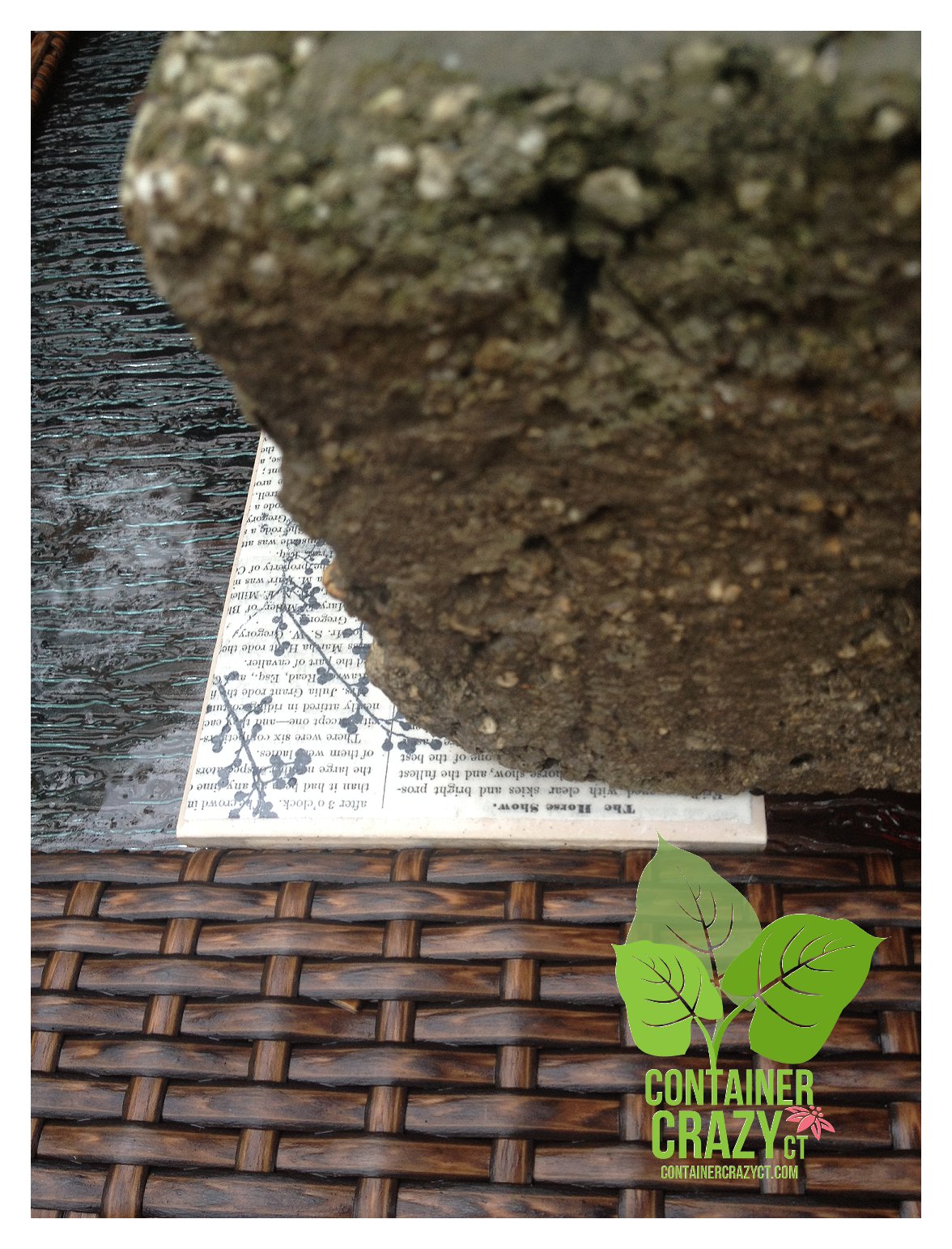 This Hypertufa planter is sitting on a glass surface. The pot is porous, sure enough, but the glass below this square planter forms a seal of sorts and the water stays collected under the Hypertufa planter. In wet conditions like we are having this week from the weather, I definitely prefer to have that little elevation below this planter – and coasters are perfect for this one.