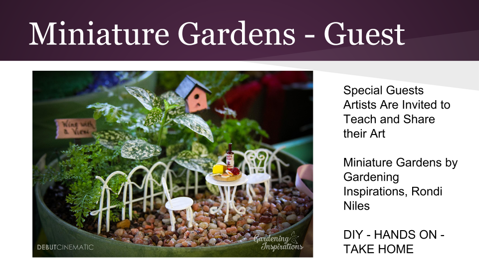 The workshops are held in Broad Brook, CT. They are convenient, educational, and a great way to network with other gardening friends. But most of all, they are fun! Last year, we held two sessions on Miniature Gardens with special guest speaker, Rondi Niles of Gardening Inspirations – it was held twice because everyone enjoyed them. This year, the Container Garden Workshops will be held twice as well. I hope you will join us and share the events with your gardening friends.