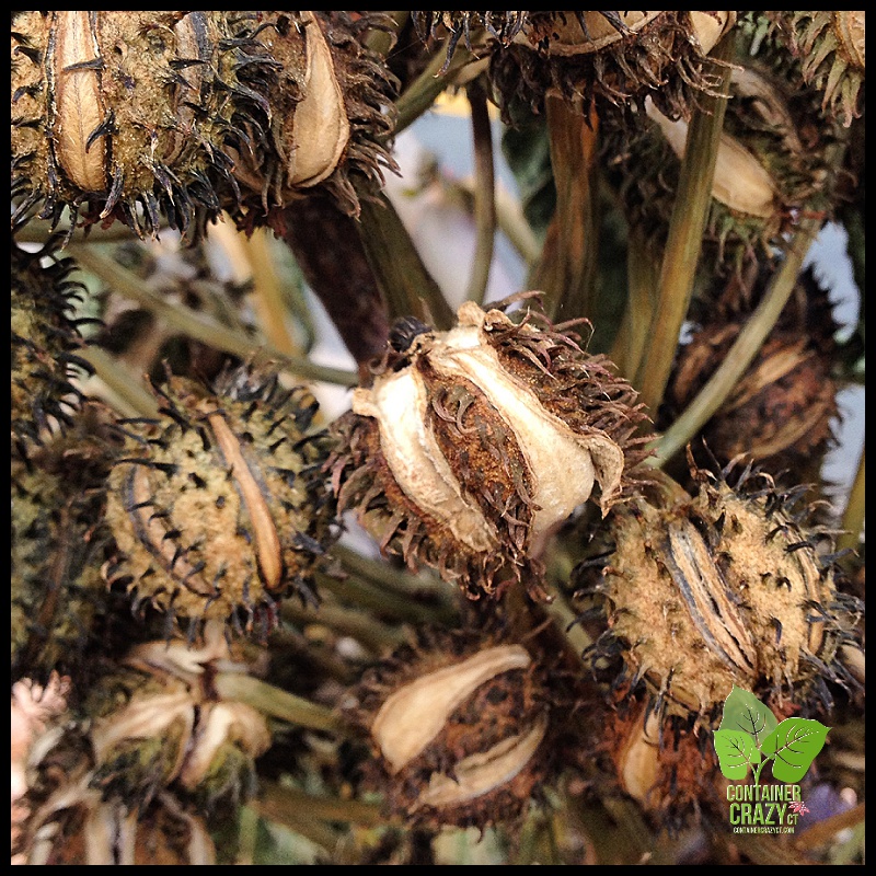This is a photo of the spiny seed pods of the Castor Bean plant which I’m saving to use for next year’s plants – For more about this plant and its spooky features, read this post: