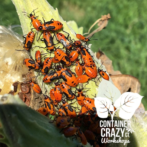 I left off on my prior post at the Scantic River in East Windsor, CT. During a nature walk there last year, we came across a stand of milkweed plants covered in brightly colored orange and black speckled bugs.