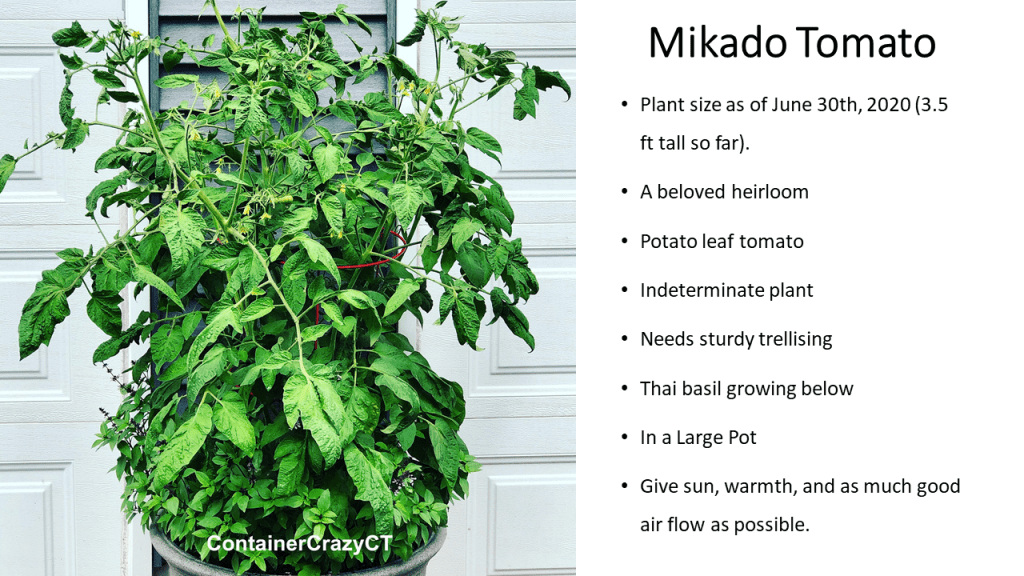 I think these plants along my garage will grow slower than those on my deck which are in full sun. I plan to share photos of all my tomato plants as they progress with fruit and I just can’t wait to taste the flavor when the first one is fully ripened on this Mikado.