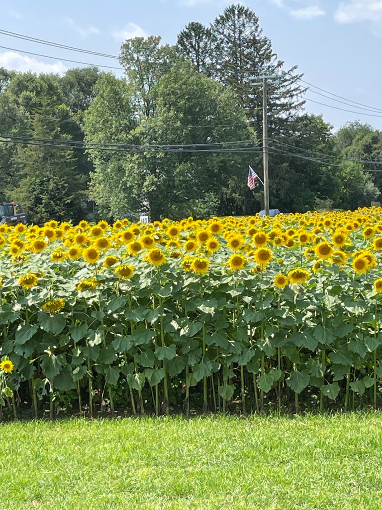 Oakridge Farm plants them. Look at this view of a photo I took. So many sunflowers! Lots of bees that day too.