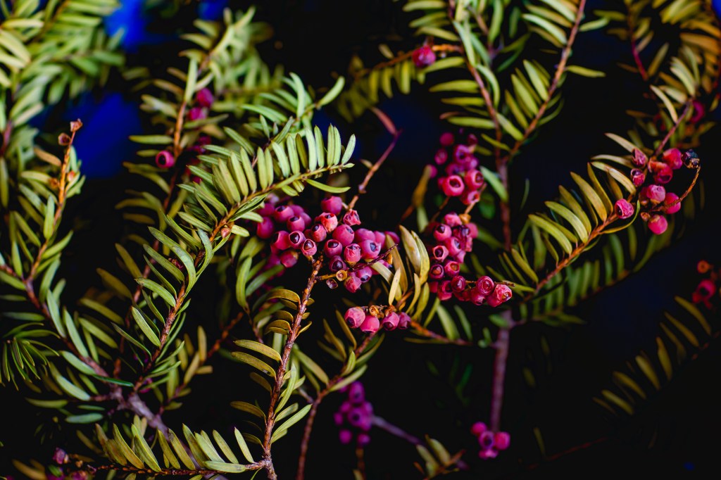 Yew with red berries! This was one of the only greens I harvested myself from my father’s property. He had an old standing grouping of yew trees that were huge! People overlook this green. It has decent needle retention and adds another texture. Why not use it?! I did.