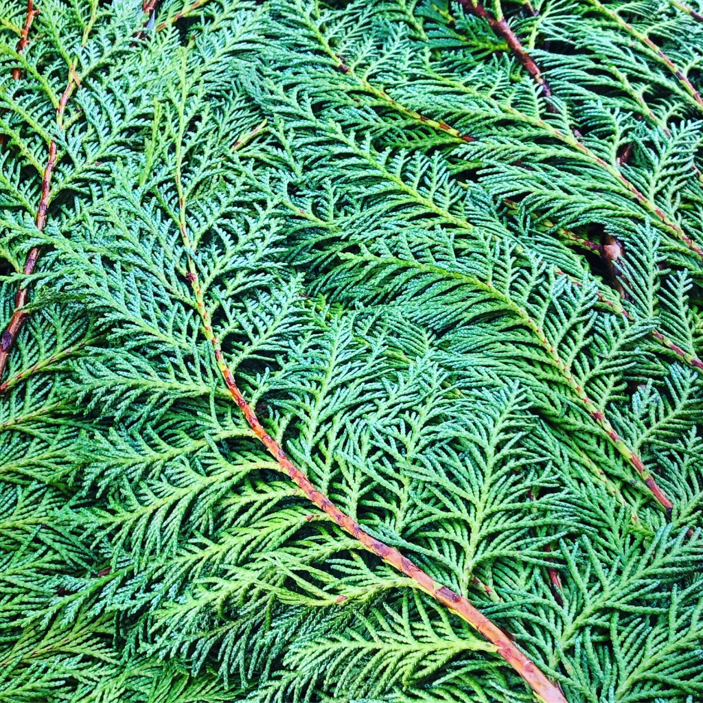 Cedar – The scent and movable texture. Can be used nicely solo on a wreath. You can make a wreath fast if you use only cedar. The branches or tips are long and easy to bend on to a circular wreath frame. I used cedar only sometimes on super big wreaths I made for an outdoor balcony.