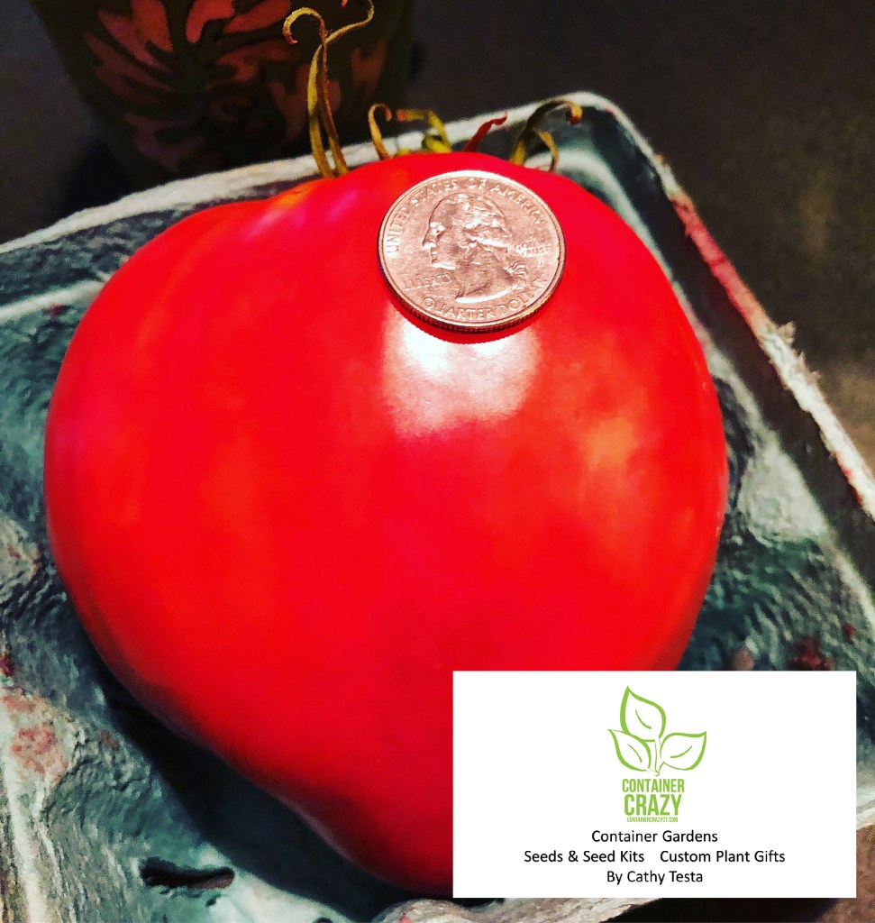 It is Valentine’s Day weekend, so I thought it is appropriate to share information about how I grew big tomatoes in a big pot.