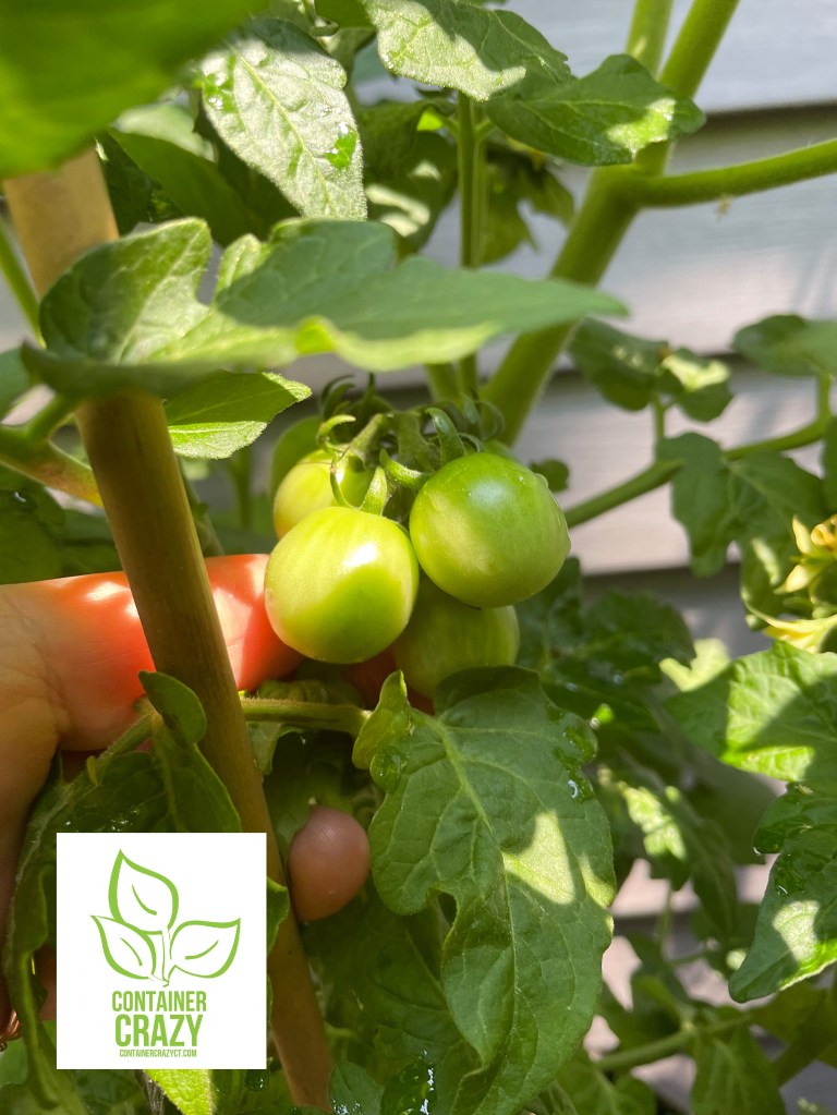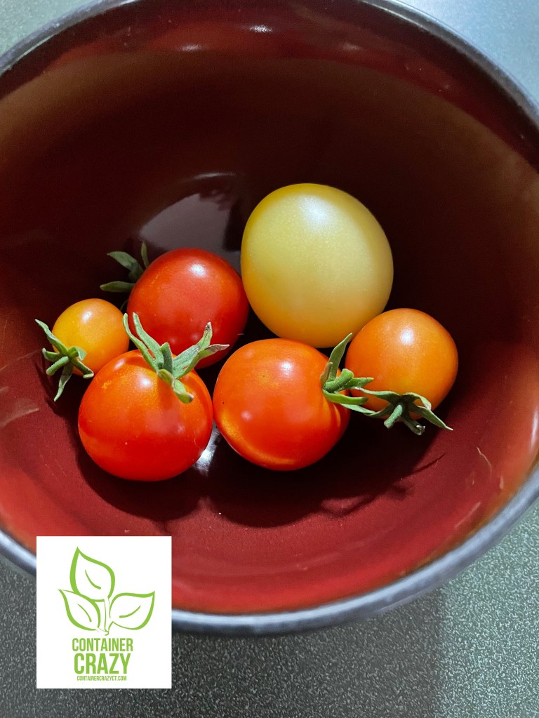 I used 5-6″ round pots and added fresh slightly pre-moistened potting mix (not seedling mix) and I used a clean golden knife to make a hole to insert the seedling into. I’m probably over cautious and handle all with care as to not damage the small seedlings. The golden knife was from a utensils set I received as a gift over 30 years ago – yes, as a wedding gift. The funny thing is I never really liked the gold color so I stored the set – and now they are used as gardening tools for me in the greenhouse. I can’t remember who gave that set to me. They would be surprised to know I’m using them this way today.