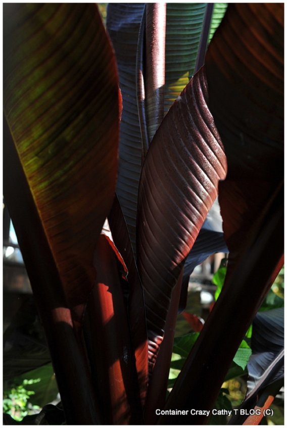 Today I am sharing a photo I had taken by a professional photographer of my large and beautiful red banana plant in 2013. I have stored this plant every winter and regrow it in a very large cement walled raised bed in my backyard. The bed faces east and is situated on the backside of my pool and lower deck. The top of the plant becomes visible from the upper levels of my deck when it reaches about twelve to fifteen feet tall.