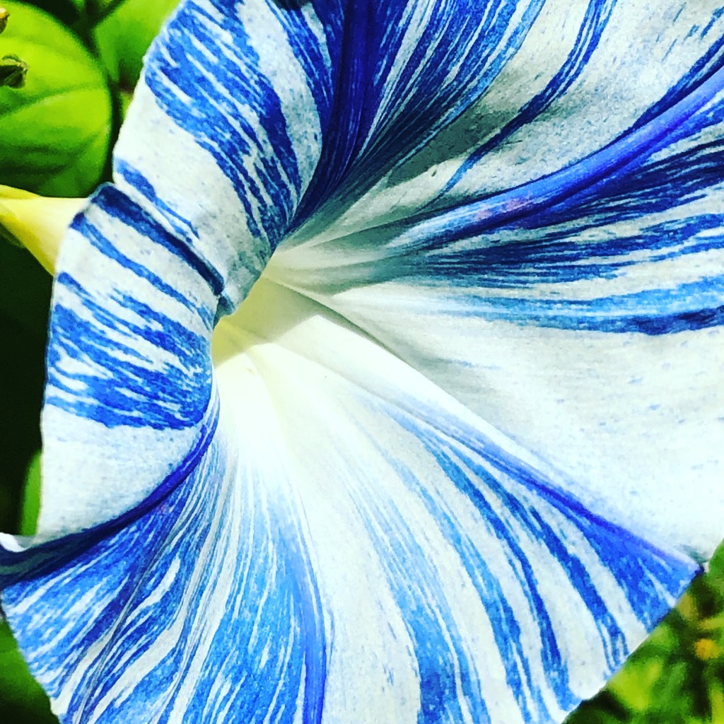 Blue and White pinwheel morning glories. Grown from seed one year. Absolutely stunning and fun.