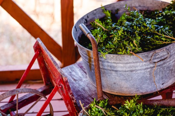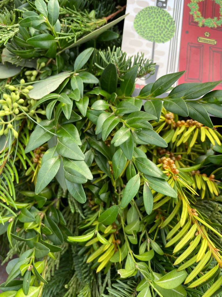As far as a quality green, I like boxwood on the greens list. It tends to give a classy look to a wreath or kissing ball. Used alone or with a mix of other greenery, it works very well. In my mind, it is a nice benefit or not sure of the word, but a higher-end type of greenery to use and if you can afford it, I say do it!