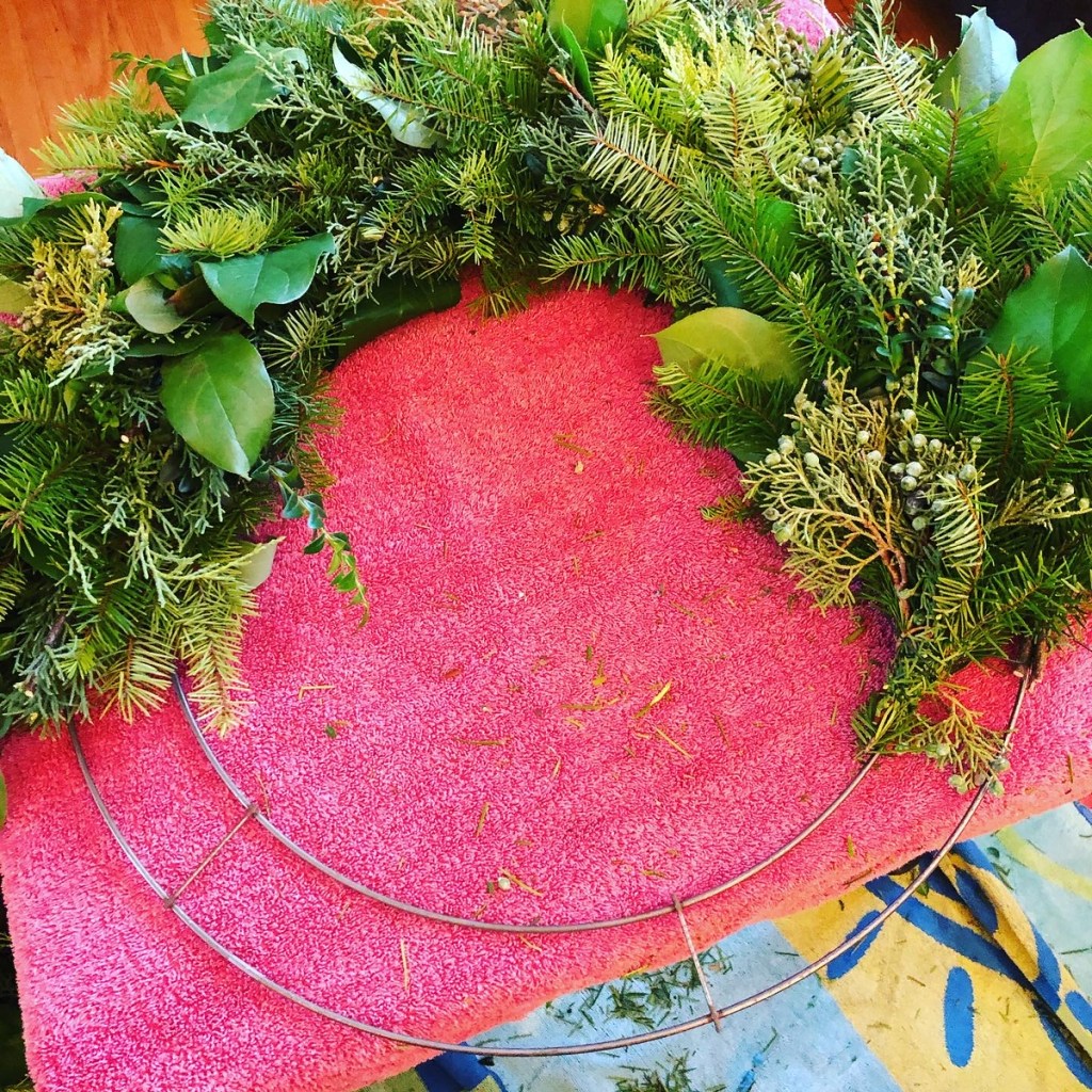 Another nice aspect of using boxwood is it was a faster assembly as shown above on this wreath with only boxwood. It would take a lot less time than bunching various greens together.