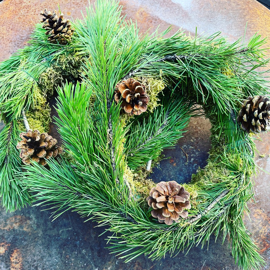 I can’t find the photo of this but years ago, a friend at my workshops, made a horse profile wreath and the shore pine is perfect to create the mane along the horse’s head portion. When I find the photo, I will update this post! But any animal like wreaths you may consider making, think of the shore pine as useful for things like that – a tail or whatever. All you have to do is get creative!