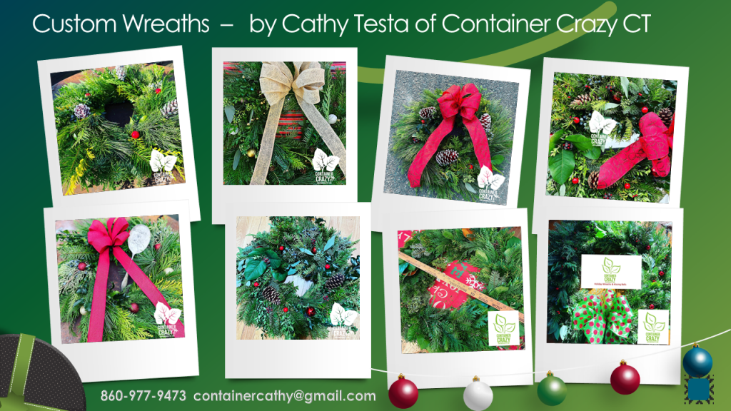 Cathy Testa Container Crazy CT Broad Brook/East Windsor, CT 860-977-9473 Today’s Date: 12/13/21 See also www.ContainerGardensCT.com for Holiday Installs See also www.WorkshopsCT.com for Custom Creations