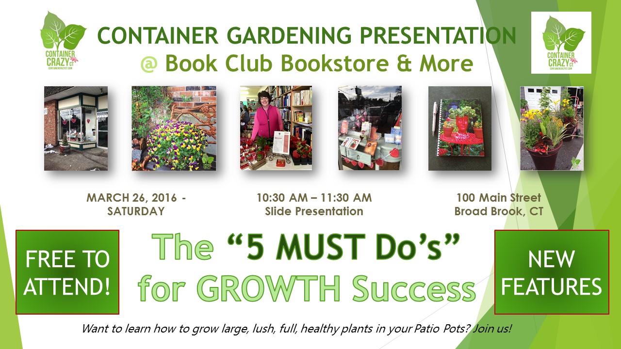 If you wish to see the process to learn the hands-on how to, this session is for you – and especially for attendees of Cathy T’s May Container Garden Workshops.