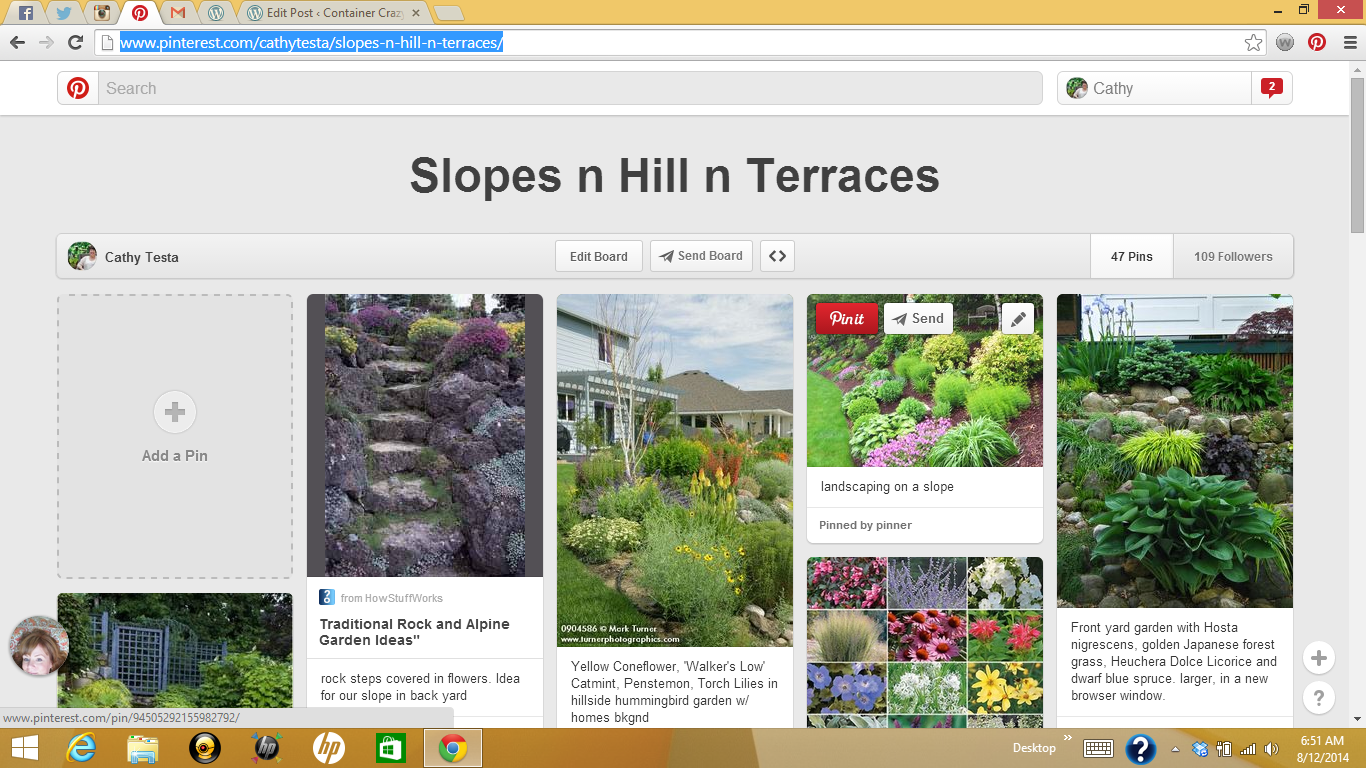 To see many examples of Hill Side Gardens, visit http://www.pinterest.com/cathytesta/slopes-n-hill-n-terraces. Click the Pinterest icon on the right side bar of this blog to get there quick.