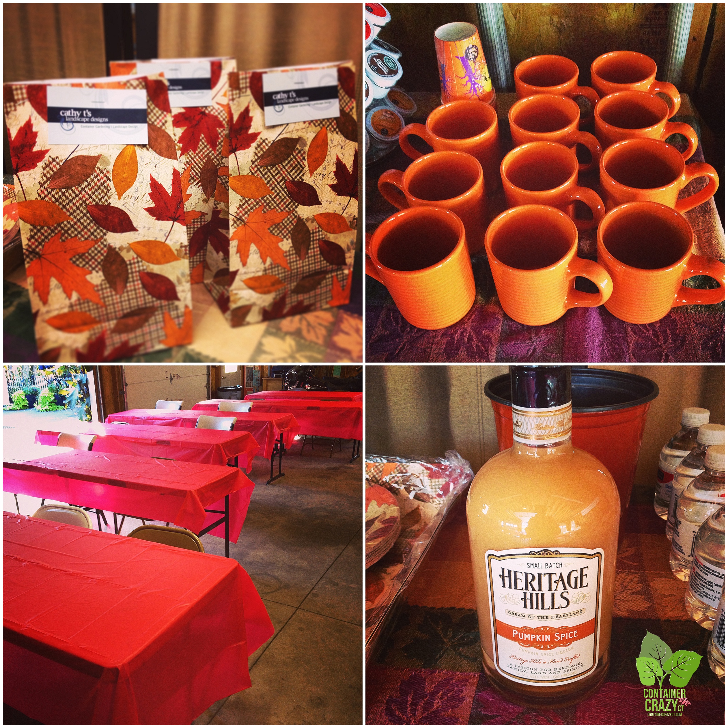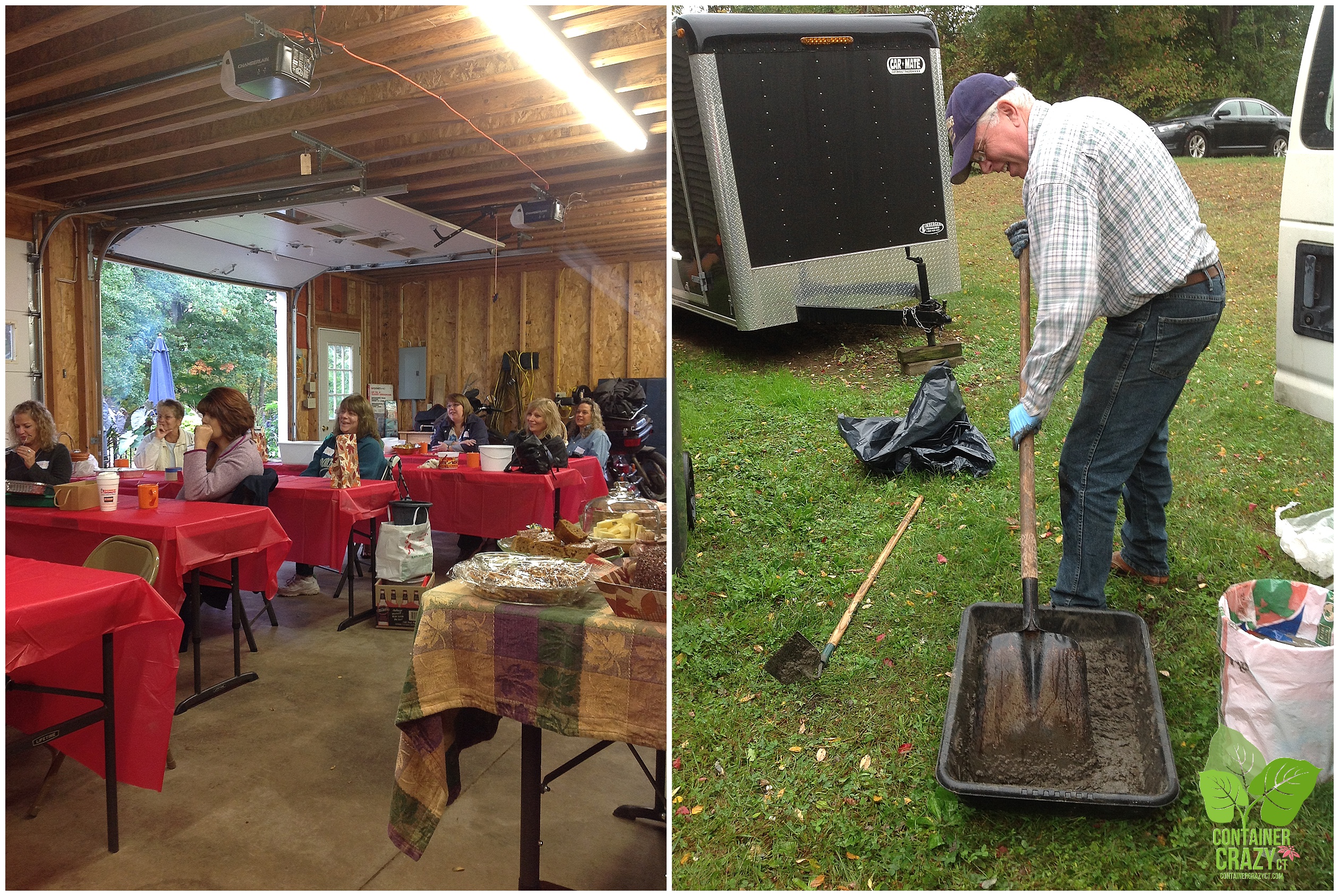 And if the fall clothing didn’t work, a cozy outdoor fire pit and hot coffee spiced up with pumpkin flavoring and whipped cream was offered to the attendees to warm up their fingers before they began their work of assembling their first hand-made hypertufa pots under the careful direction and guidance of Jim as our guest instructor.