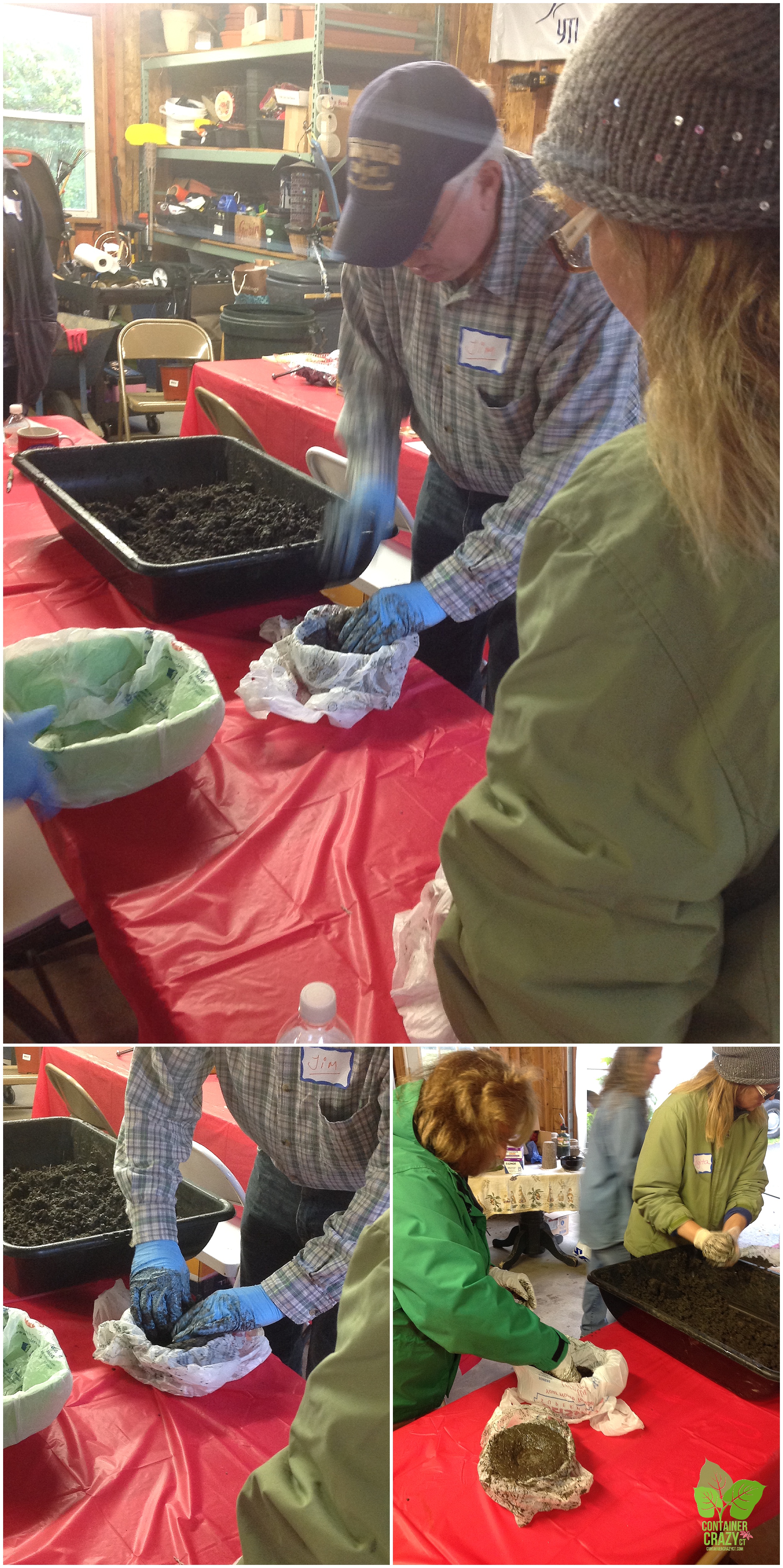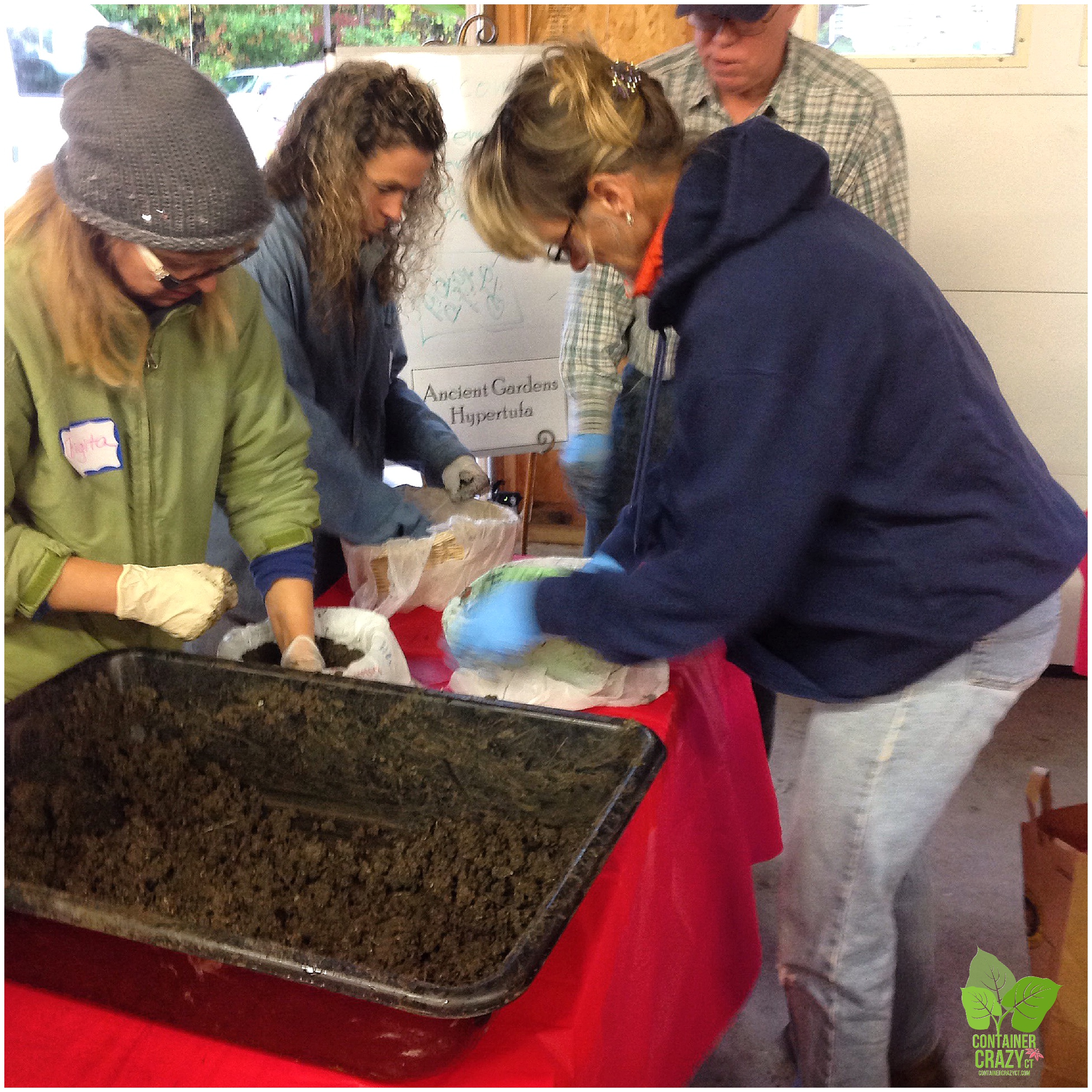 Mixing water into the hypertufa mix is an art form, similar to how one must master the art of watering plants in container gardens. There’s a bit of science and art to the process, and our special guest instructor, Jim, was sure to show and tell this aspect very well to the attendees.