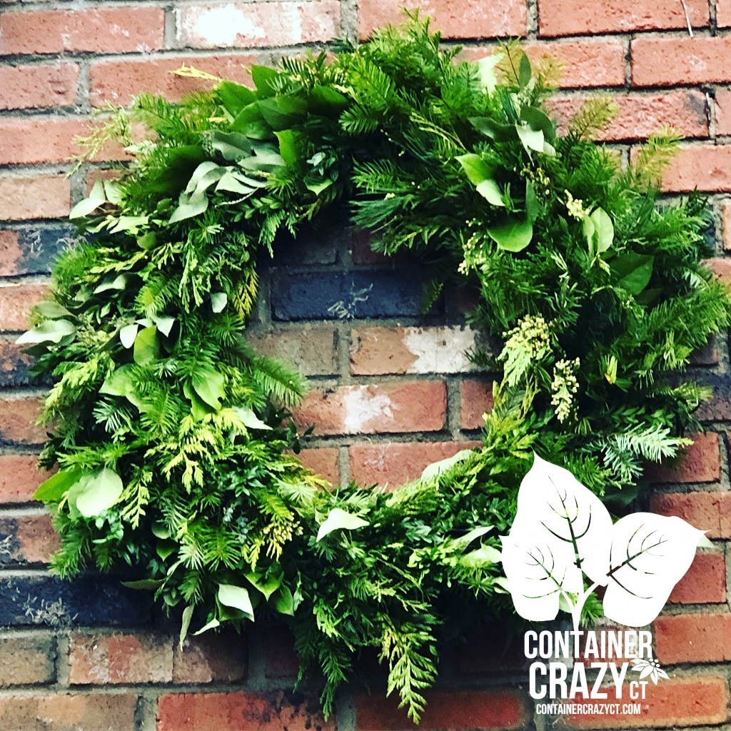Mask. Not a joke here, but last year, I wore a face mask because the smells of the greens were starting to make me sniff and sniffle. I wear them after a while if the strong greens smells start to get to me, plus moving and cutting greens increases the dust or pollen around me. If I wear a mask, I’m not breathing that in. I make a lot of holiday wreaths and kissing balls, so it is helpful, and this year, during COVID, we have masks handy, and my mask this year has a holiday theme too! Might as well be festive.