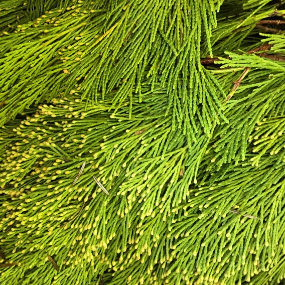 • Golden Arborvitae – Soft, flexible yet so beautiful – it has patterns of golden yellow in the green, and really so pretty to add as another element. Like the Cedar, it is a little softer and pliable.