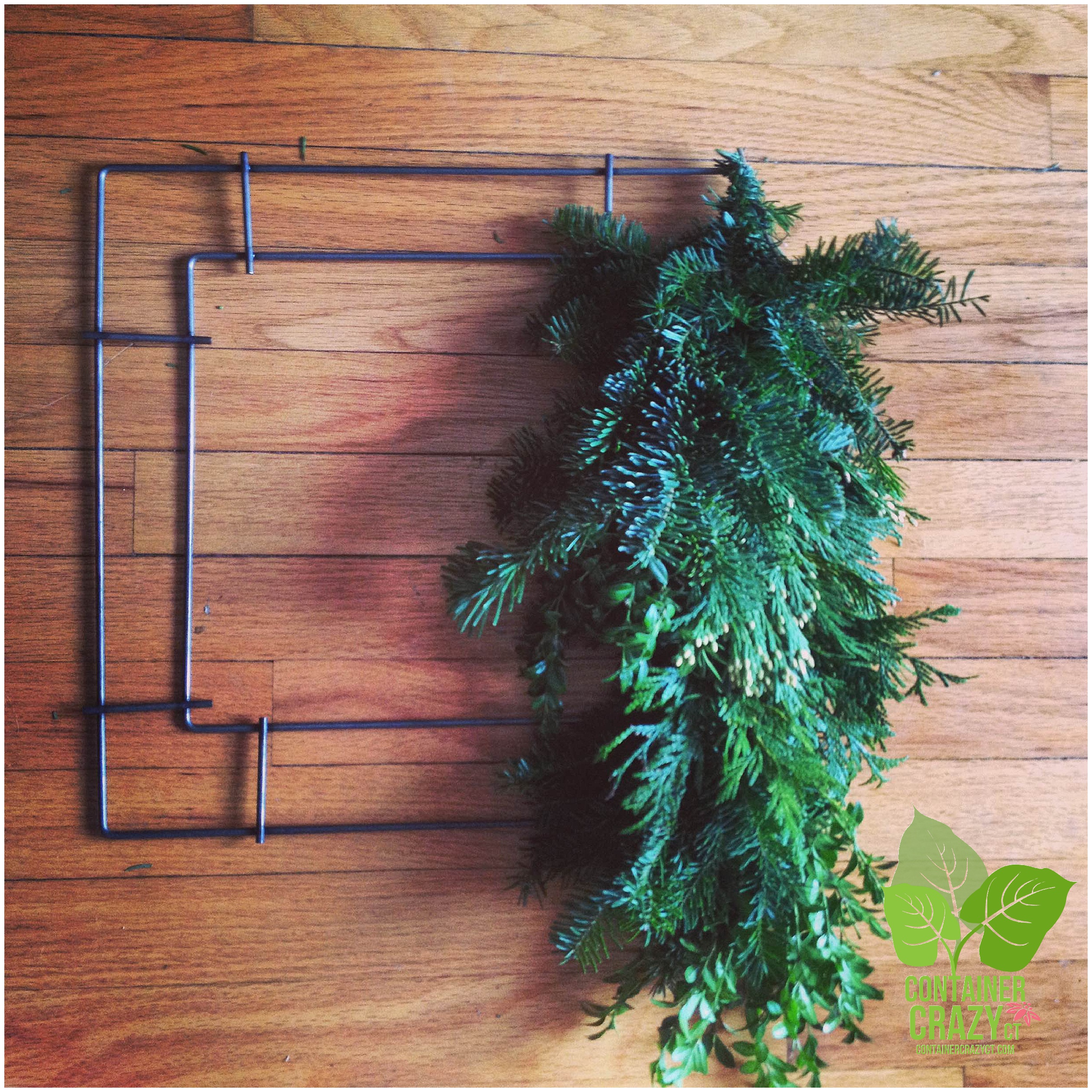 Because I wanted to see how it would look if I cut and batched the fresh evergreens by same type, this is the option I used to make my first square wreath.