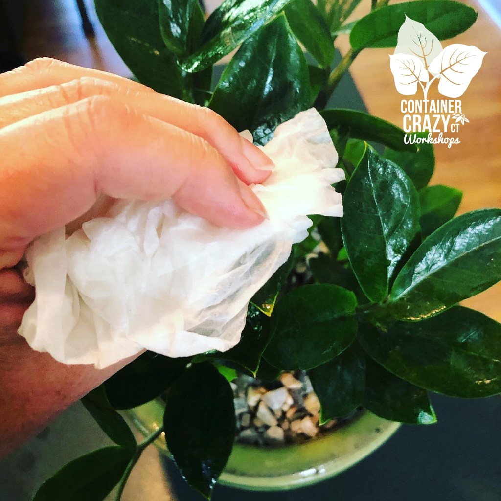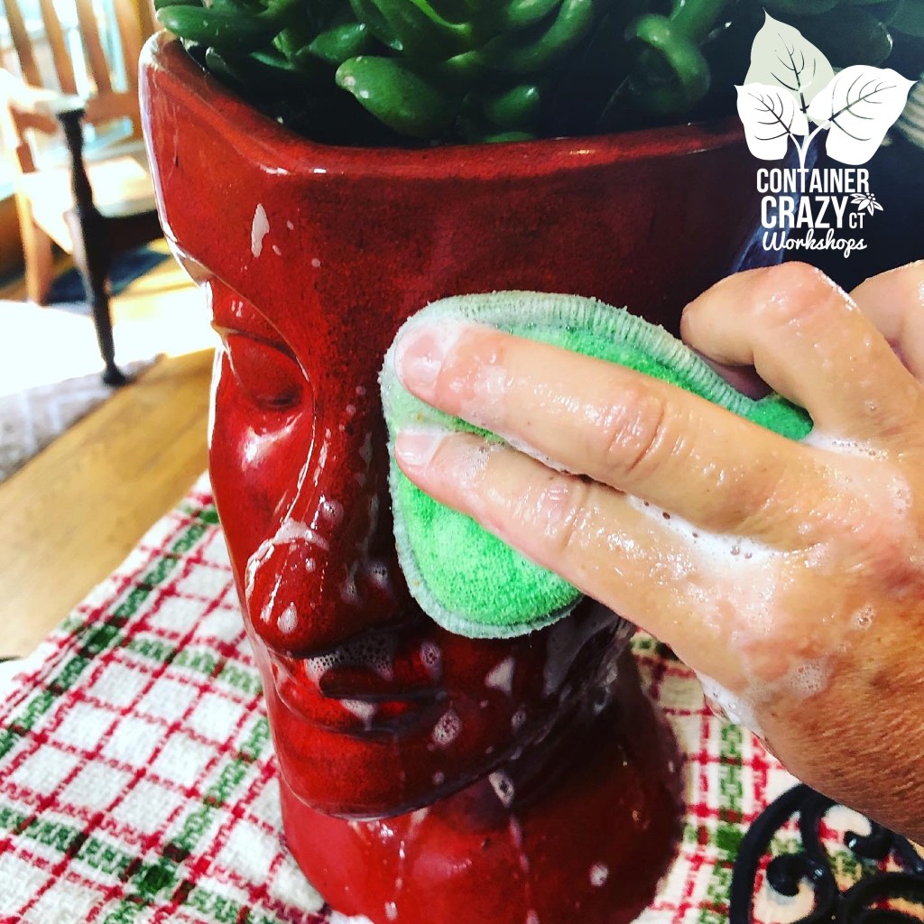 I followed the same steps above: inspect, look it over, remove any damaged leaves. I did not wash this pot because it is terracotta and porous so the soap could go into the pot and although probably not too harmful, I just used a rag to wipe away any debris.