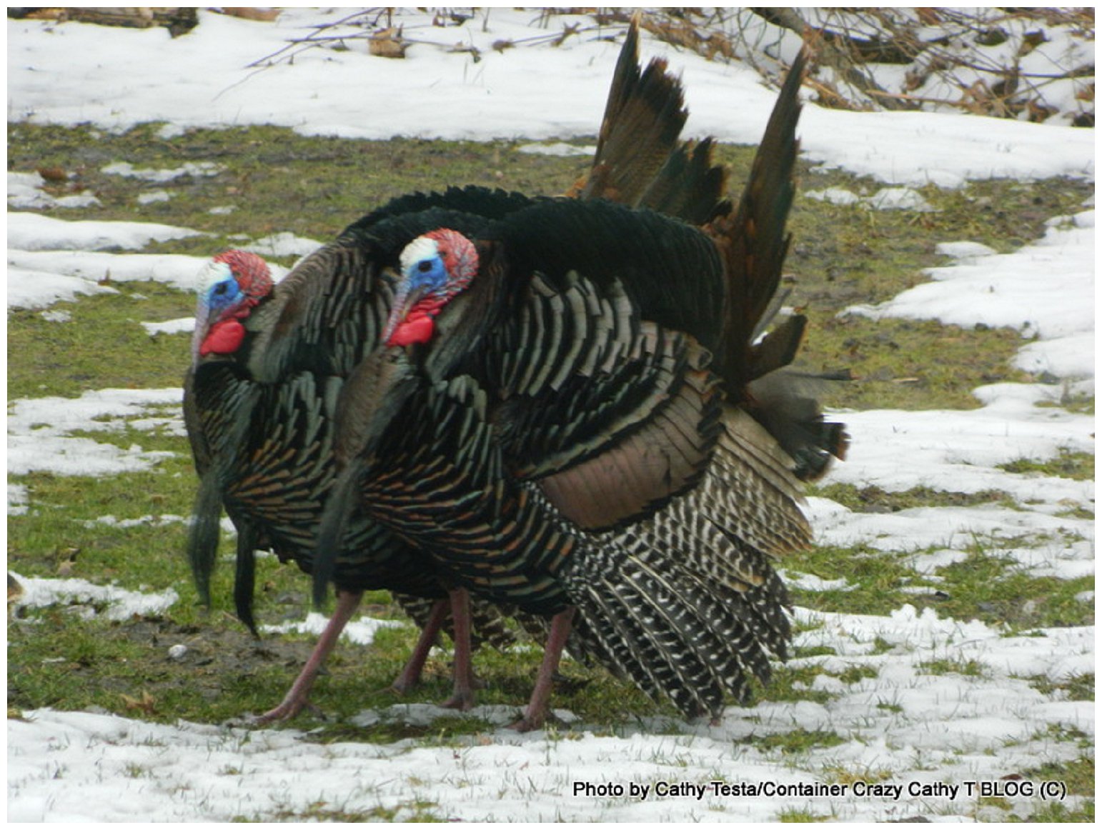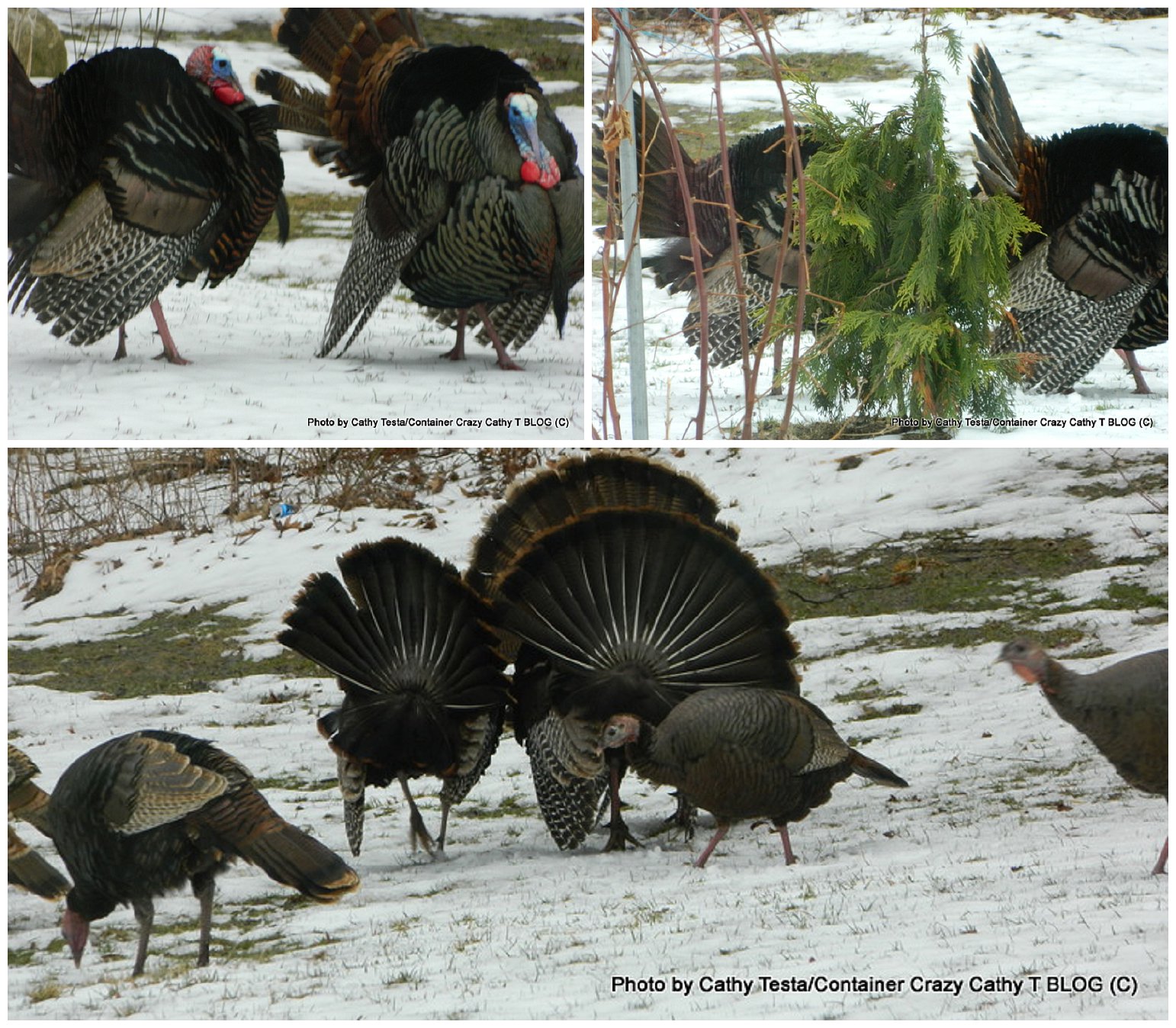 Although a little blurry, because I was standing on my deck to take these photos, here are my wild turkeys resting in the yard. I just love when they sit down and feel like they can hang in the shade, but if they see me coming, they pop up quickly to walk away, even though I tell them every time, they are safe here with me. On the bottom photo, they were resting under the shade of my Metasequoia glyptostroboides (Dawn Redwood) tree. I planted this tree on my parent’s 50th wedding anniversary and it is doing well ever since which I believe is because it is planted in an area that remains moist and this tree likes moist, deep, well-drained, slightly acid soils. The area slopes here so it is well-drained as well. My sister bought one too on the very same day with me, and planted it in her yard, and it is not doing as well unfortunately – she has dry soil so it is a great example of putting the plant in the right place. The interesting thing about this tree is it looks like an evergreen pine like tree but it is deciduous (looses its needles) in the fall so it is naked in the winter, however, due to its beautiful reddish brown bark which becomes darker with age, it is pretty in the winter months as well. It grows tall too – up to 70′ or more in some cases. I love seeing birds fly up to it and rest on its branches as they travel from their birdhouses and feeders in our yard.